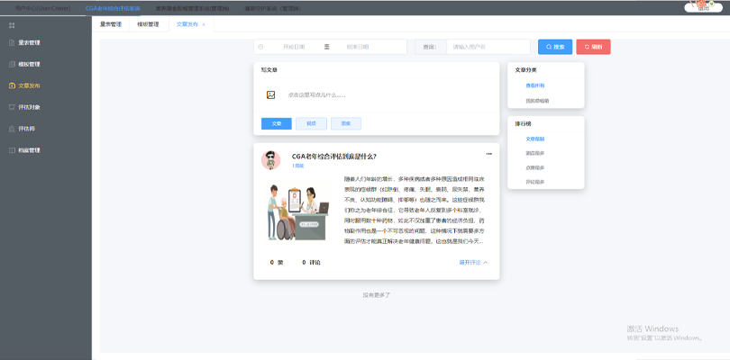 老年綜合評估系統(tǒng)內(nèi)容包括:身體健康評估、認(rèn)知評估、心理評估、日常生活能力評估、抑郁狀況評估、家庭和社交狀況評估等。老年綜合評估系統(tǒng)的使用范圍較為廣泛,不僅適用于醫(yī)院、養(yǎng)老院等老年人服務(wù)機(jī)構(gòu),也適用于社區(qū)、家庭等各種老年人生活場景。此外,老年綜合評估系統(tǒng)對于老年護(hù)理和康復(fù)專業(yè)人員的培訓(xùn)也是非常有益的。
