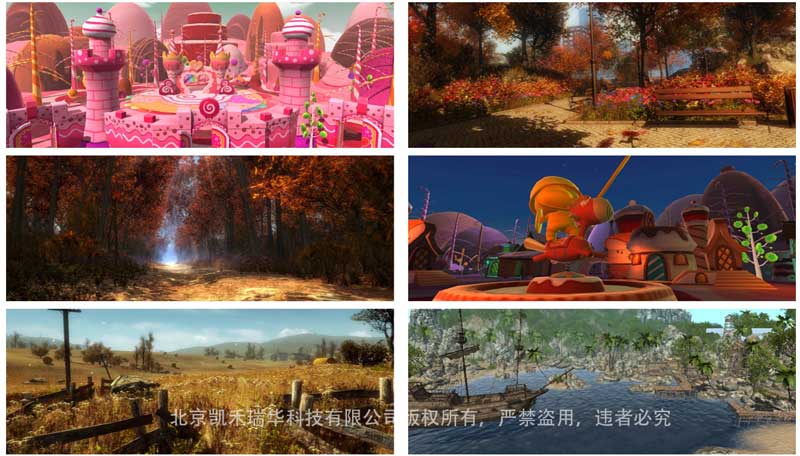 4、“交互性”指用戶通過雙搖桿(或動作捕捉)實現(xiàn)場景內來訪者自由伸展的互動效果;